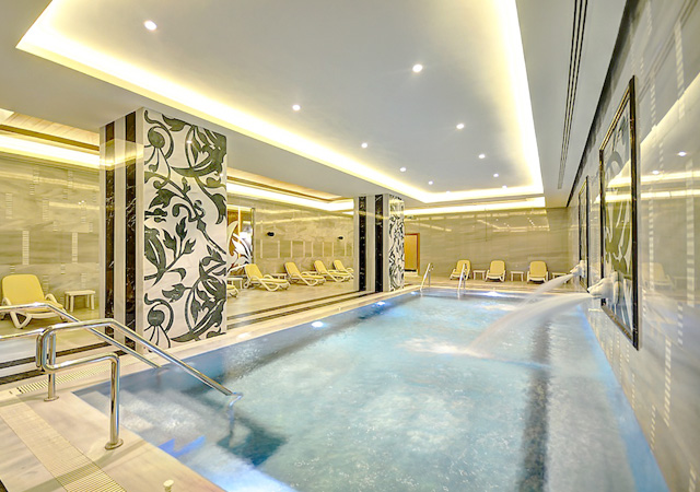 Thermal havuz, Majestik buhar odaları, Türk hamamları, Vip Türk Hamamları, Kar çeşmesi, Luna Astro sıcak yatak Titiz Mermer imzalı.