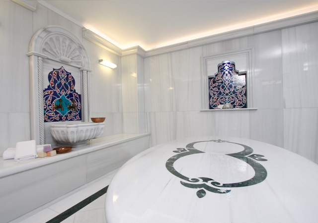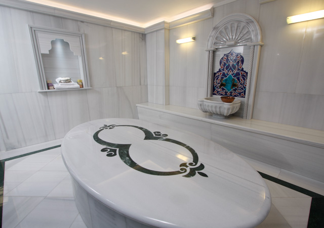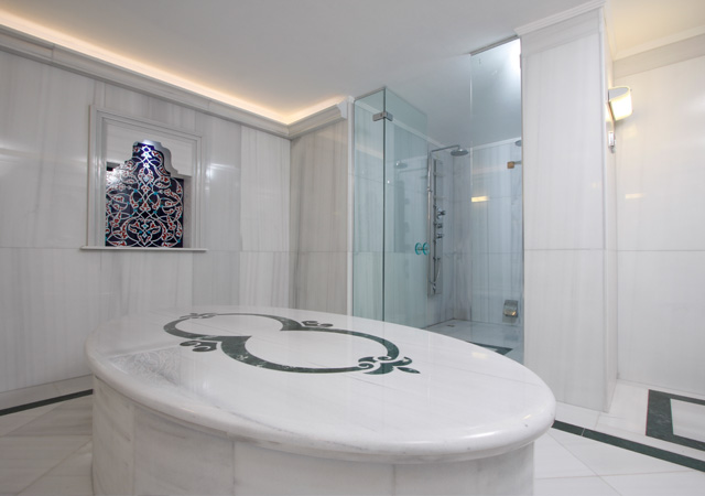 Titiz Mermer’in yine özenle ürettiği özel bir hamam. Marmara Beyazı Mermerinden imal edilmiştir.