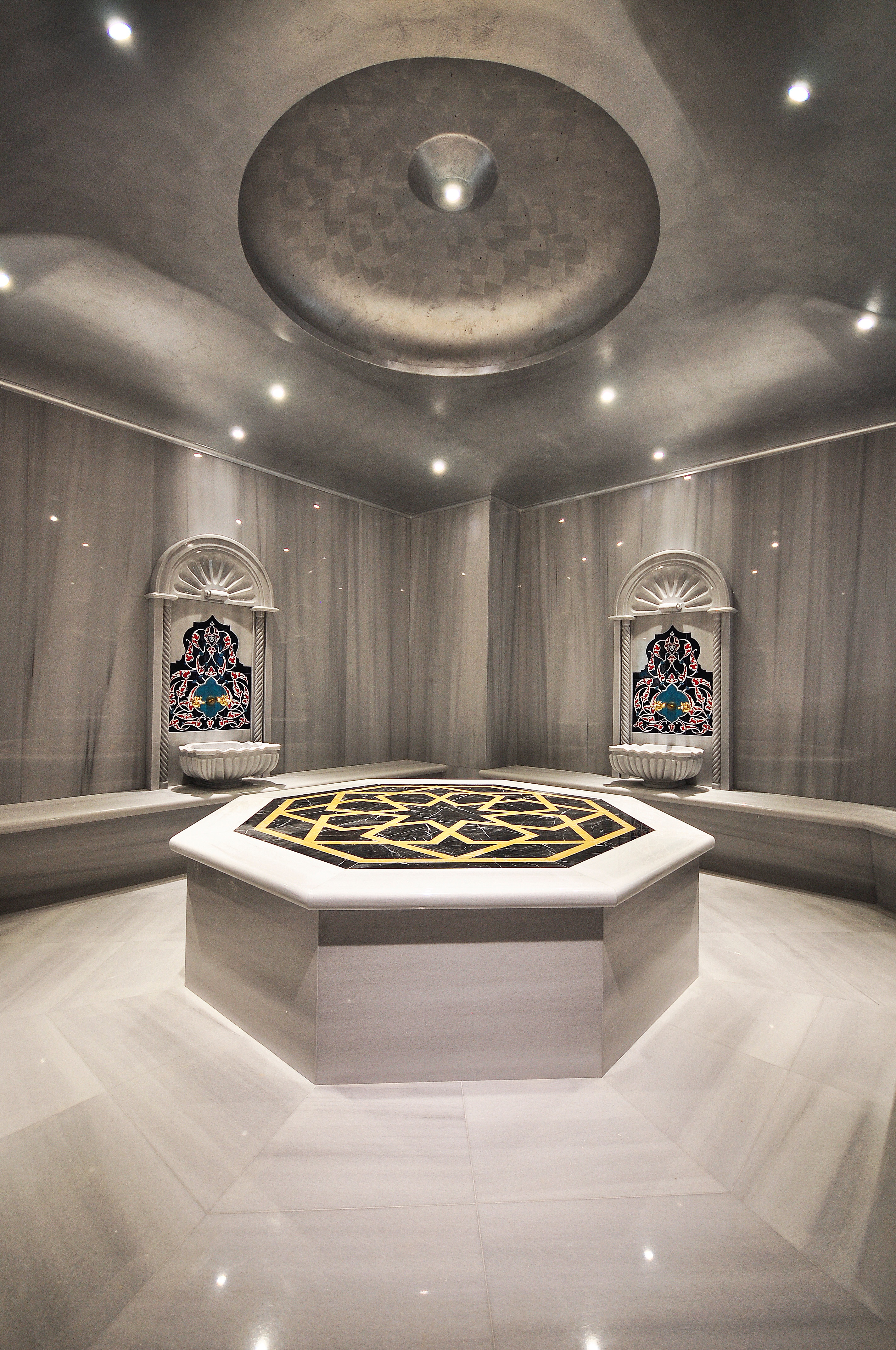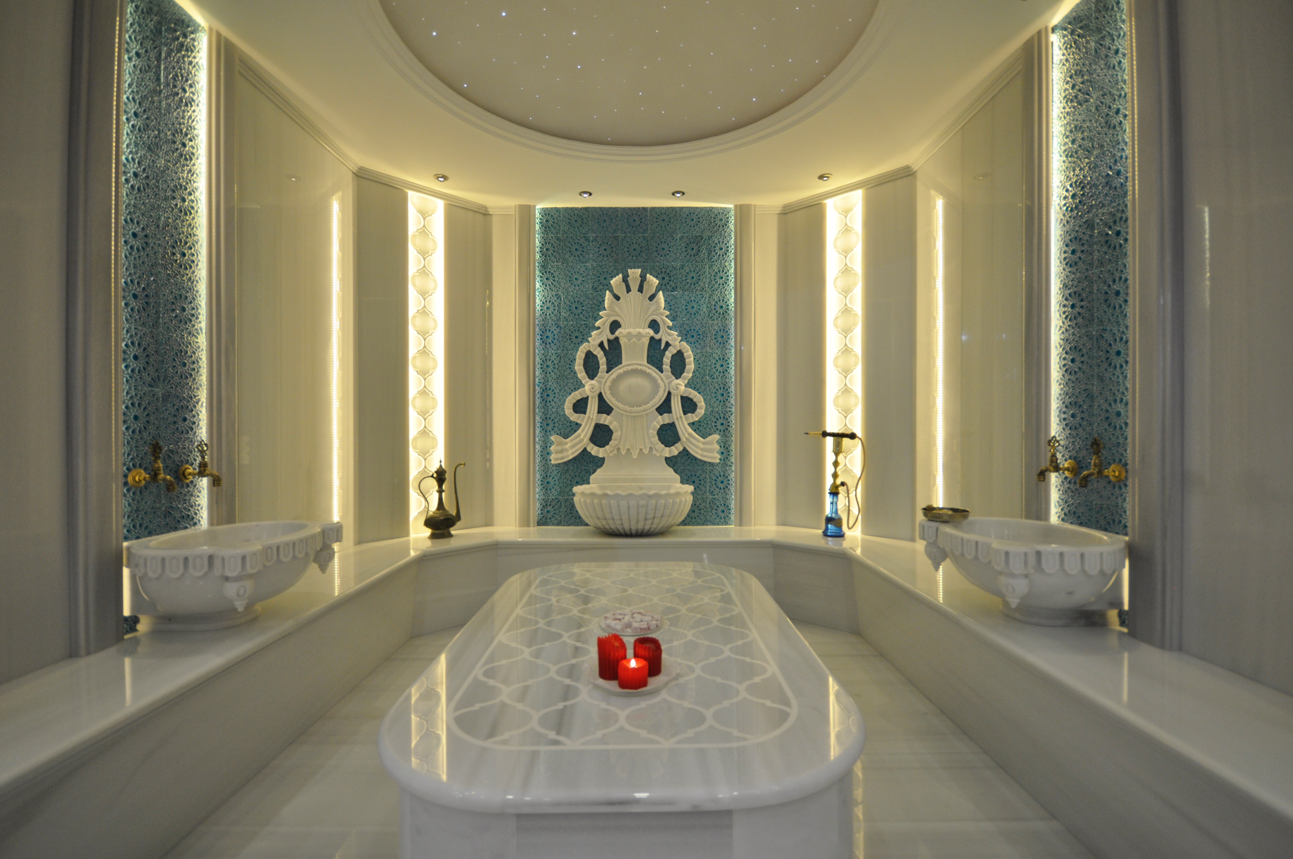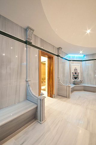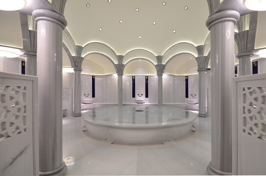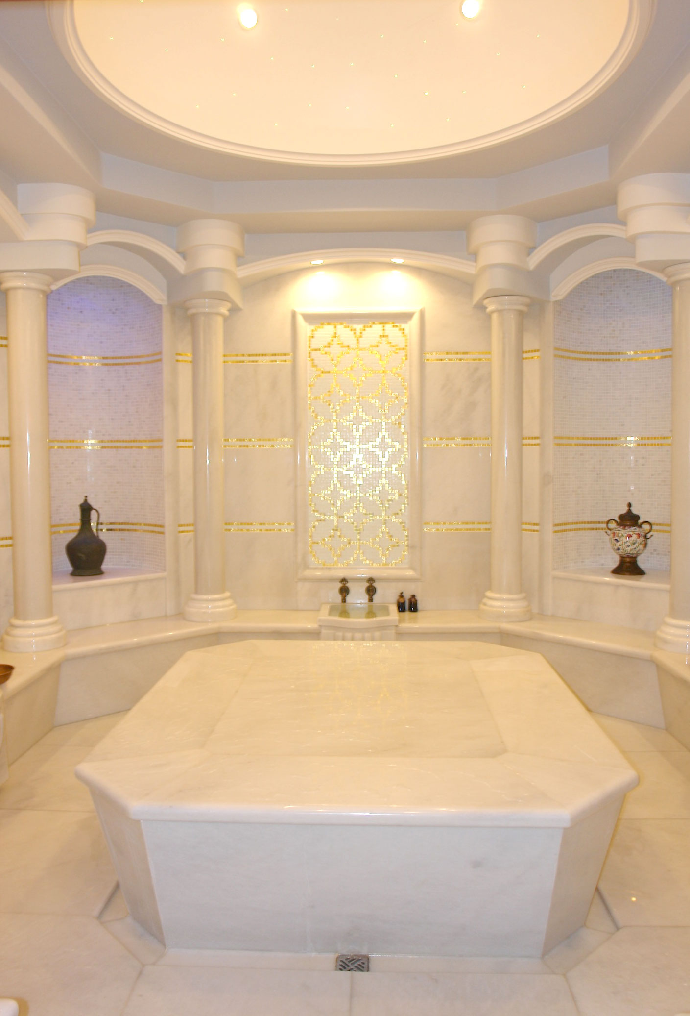 Türk Hamamı geleneğini modern tasarım ve malzemelerle geliştiriyoruz. Taş yüzeylerini işlerken geleneksel metodlara bağlı kalıyor, parçaların birbiri ile uyumunu mükemmelleştiriyor, Türk hamamını daha önce kendi fabrikamızda birleştirerek en iyi sonucu elde ediyoruz. Detayları çözülmüş bir şekilde yerine uygulanan Türk Hamamlarımız derz yakınlığı, oturma bölümlerinin dönüşleri, su giderleri, pano kurna ve kaplamanın birbirine eldiven gibi uyması gibi özellikleri ile öne çıkıyor.