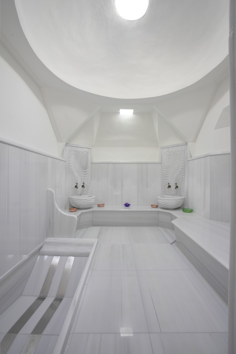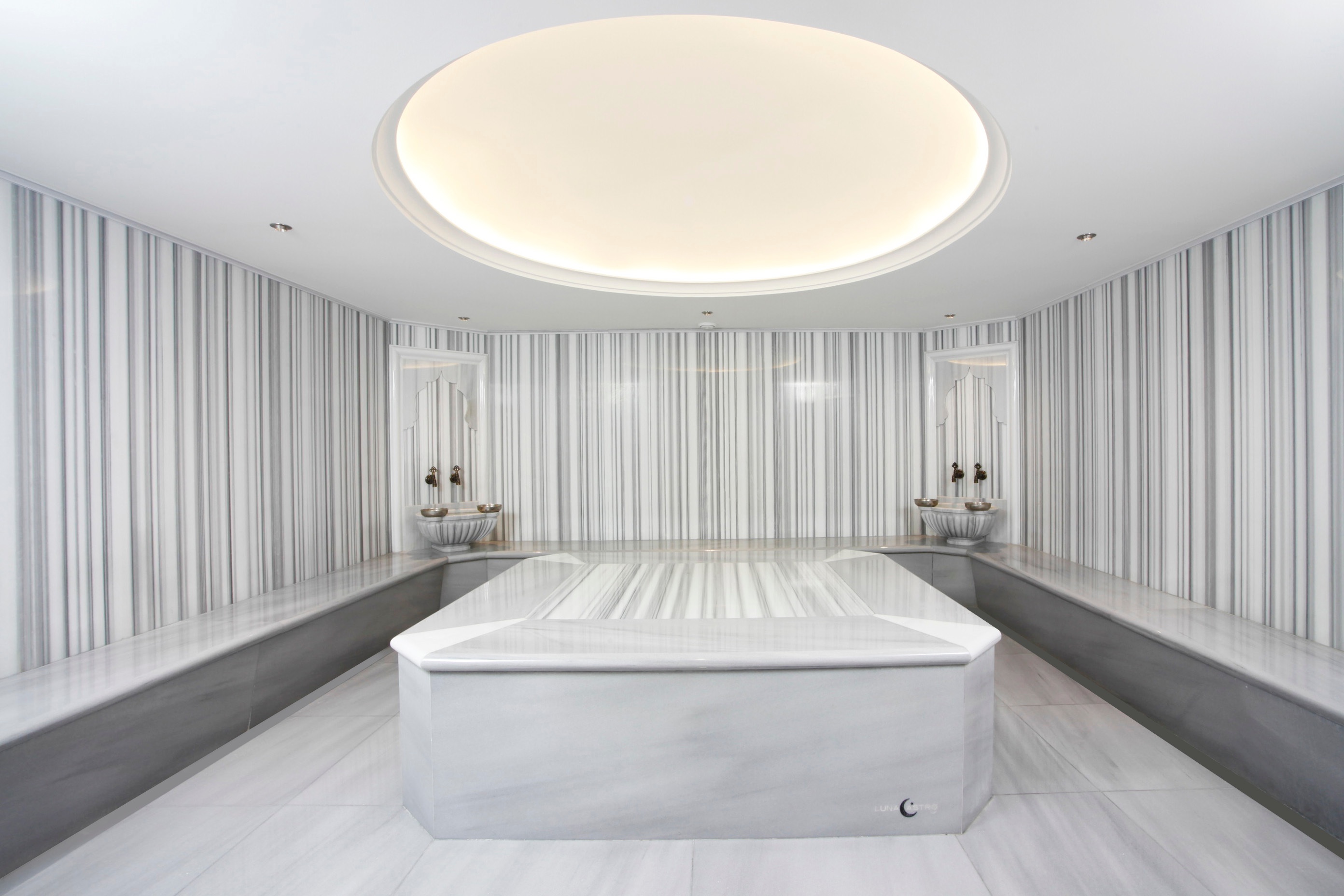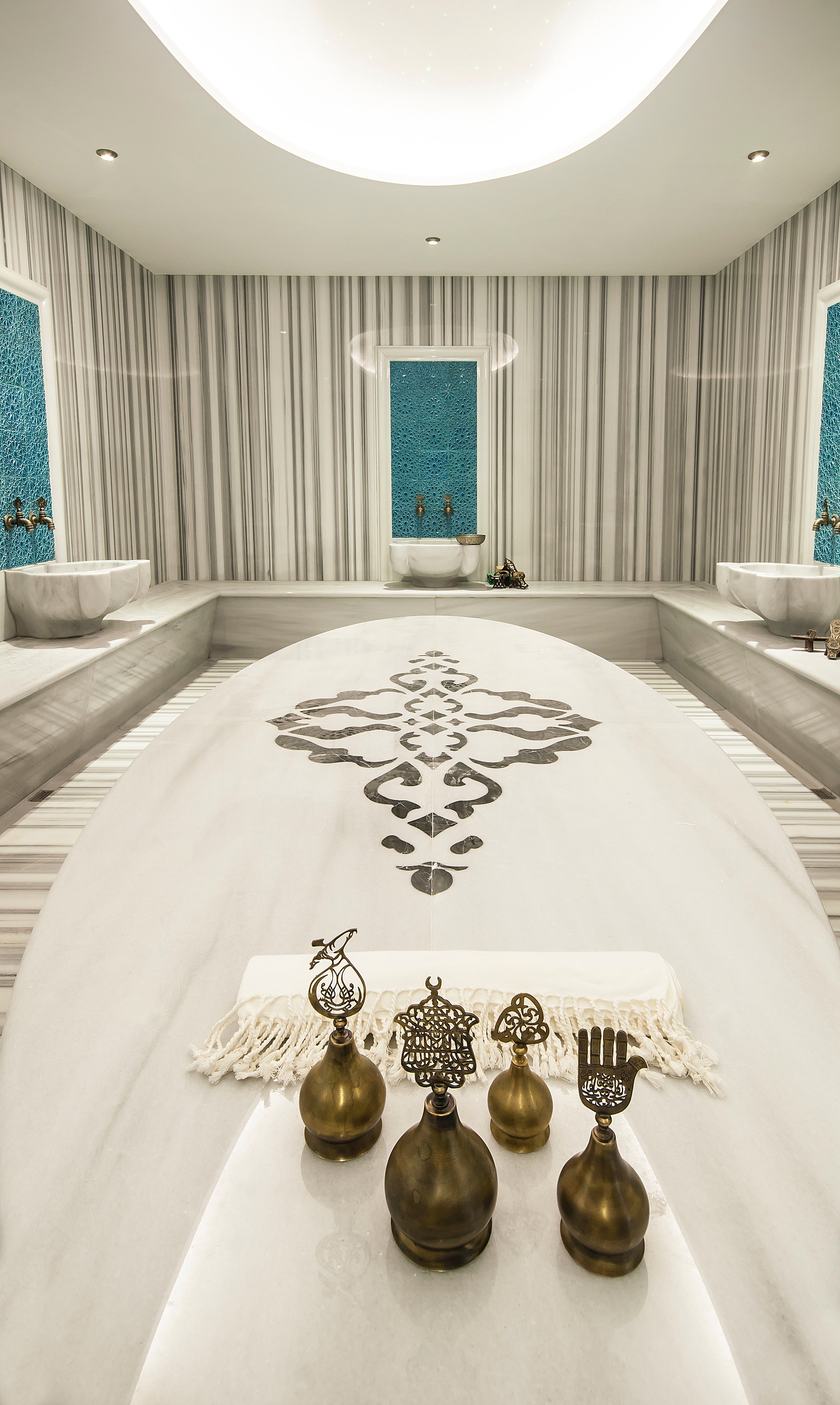 Türk Hamamı geleneğini modern tasarım ve malzemelerle geliştiriyoruz. Taş yüzeylerini işlerken geleneksel metodlara bağlı kalıyor, parçaların birbiri ile uyumunu mükemmelleştiriyor, Türk hamamını daha önce kendi fabrikamızda birleştirerek en iyi sonucu elde ediyoruz. Detayları çözülmüş bir şekilde yerine uygulanan Türk Hamamlarımız derz yakınlığı, oturma bölümlerinin dönüşleri, su giderleri, pano kurna ve kaplamanın birbirine eldiven gibi uyması gibi özellikleri ile öne çıkıyor.